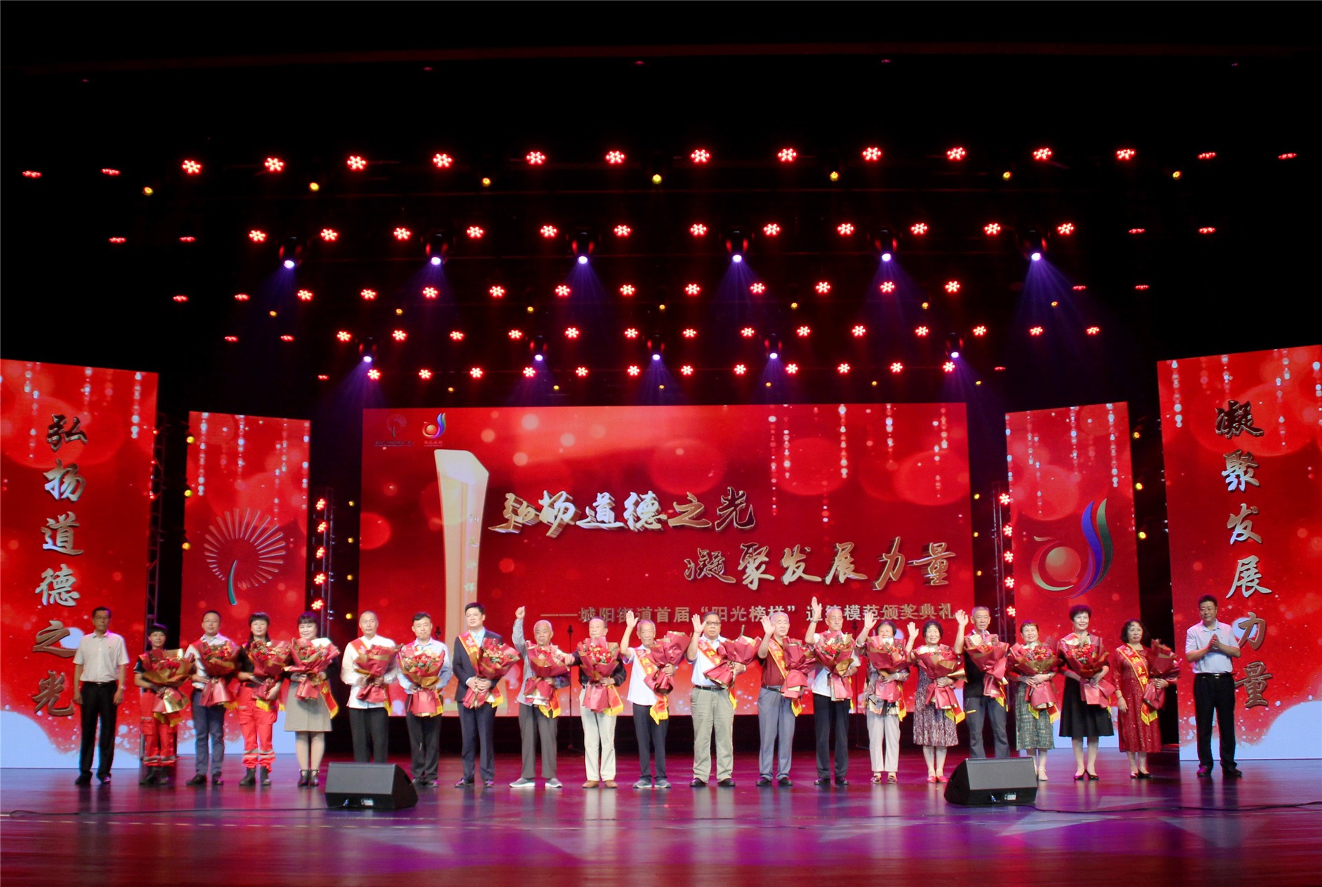 自8月6日,城阳街道正式启动首届“阳光榜样”道德模范评选表彰活动以来,在街道各社区、各单位层层推荐和社会自荐的基础上,经过严格审核、公示,最终确定了城阳街道首届“阳光榜样”道德模范名单。社区获表彰的7名道德模范,他们有的是党员干部,有的是普通居民,虽然来自不同的行业领域,但都体现了对社会的责任担当和对道德的忠诚坚守。他们在各自平凡的岗位上,用自己的实际行动展示了向上向善向美的价值追求,生动诠释了社会主义核心价值观的深刻内涵,传递了满满的社会正能量。颁奖典礼现场,社区阳光艺术团还带来了小品《女婿上门》、大合唱《向着阳光的方向》和《我和我的祖国》三个节目的精彩展演。