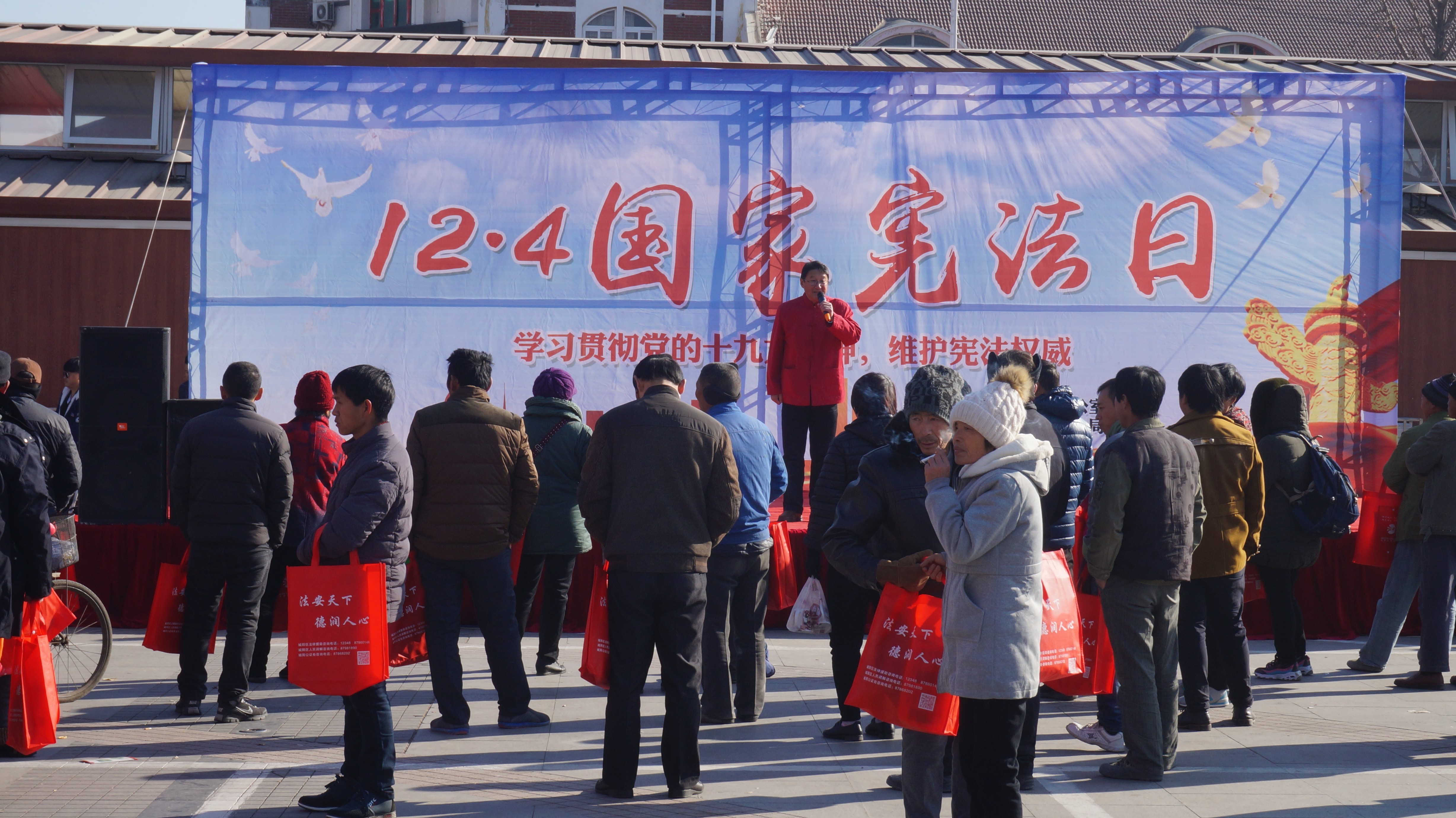 12月4日,是国家宪法宣传日暨全国法制宣传日。为深入贯彻落实党的十九大精神,弘扬宪法精神,维护宪法权威,增强全民法治观念,推动全社会树立宪法意识,推进 “阳光城阳”建设,2017年12月4日和5日上午,以“学习贯彻党的十九大精神维护宪法权威”为主题的2017年“12.4”国家宪法日集中法治宣传活动在青岛民生商贸城广场举行。活动由城阳区依法治区办公室组织主办,区司法局、区安监局、区食药局、区统计局、区商务局、区人社局、区信访局、区金融办、区烟草专卖分局、区市场监督管理局、区城建局、区地震局、区林业局、区综合行政执法局、区交通局、区旅游局、山东海卓律师事务所、山东鼎鼐律师事务所及阳光救援队等共20个依法治区成员单位参加。
