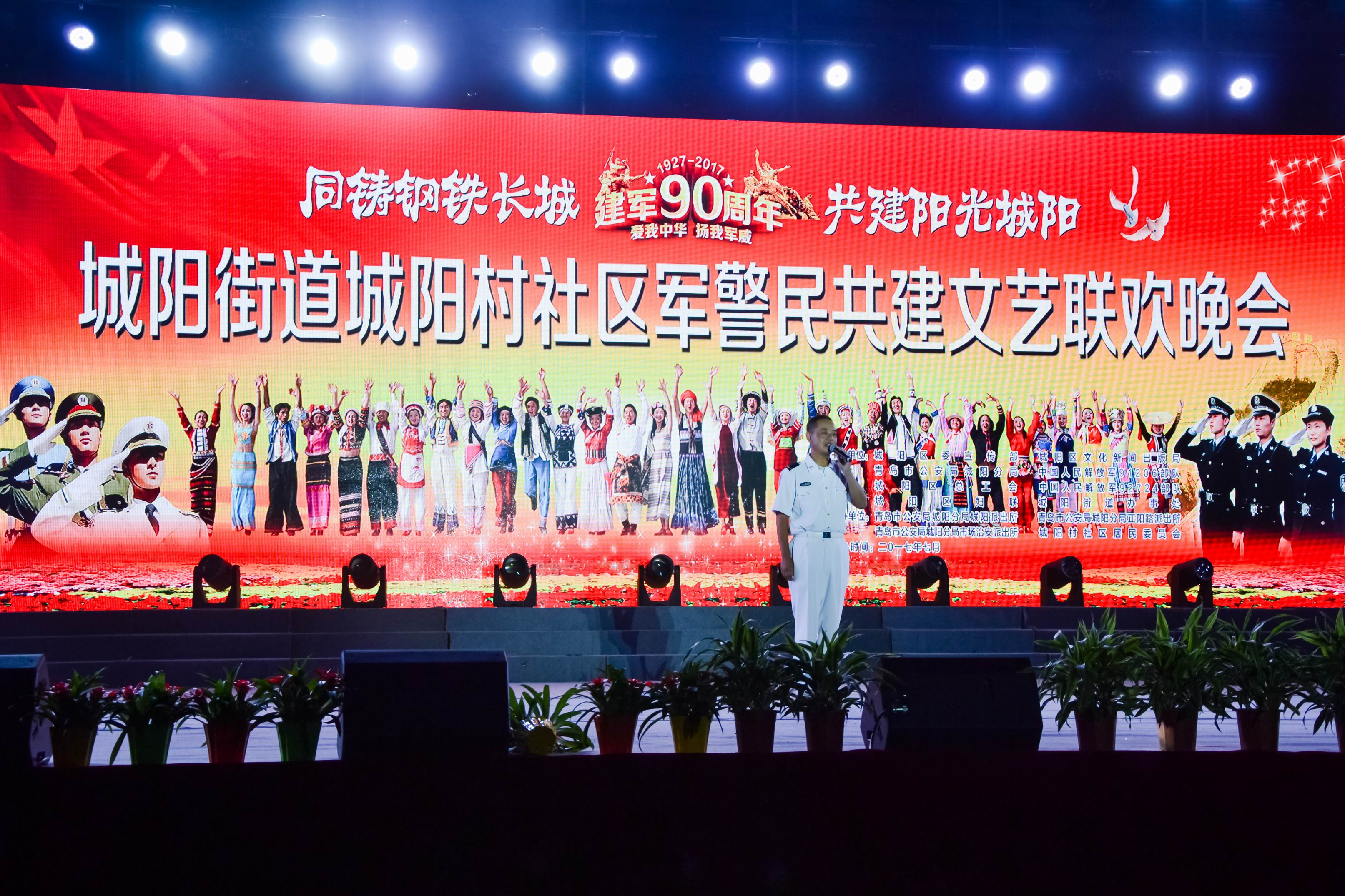 在中国人民解放军建军90周年之际,为进一步丰富社区居民阳光文化新生活,推进军警民共建深度融合发展,社区于8月1日晚7时15分在青岛民生商贸城广场举行了同铸钢铁长城 共建阳光城阳——城阳街道城阳村社区军警民共建文艺联欢晚会。此次文艺联欢会邀请了区委宣传部、青岛市公安局城阳分局、区文化新闻出版局、区总工会、区妇联、城阳街道及城阳派出所、正阳路派出所、批发市场治安派出所领导和中国人民解放军91206部队、中国人民解放军92724部队首长出席,社区居民、现场观众达5000余人观看了演出。