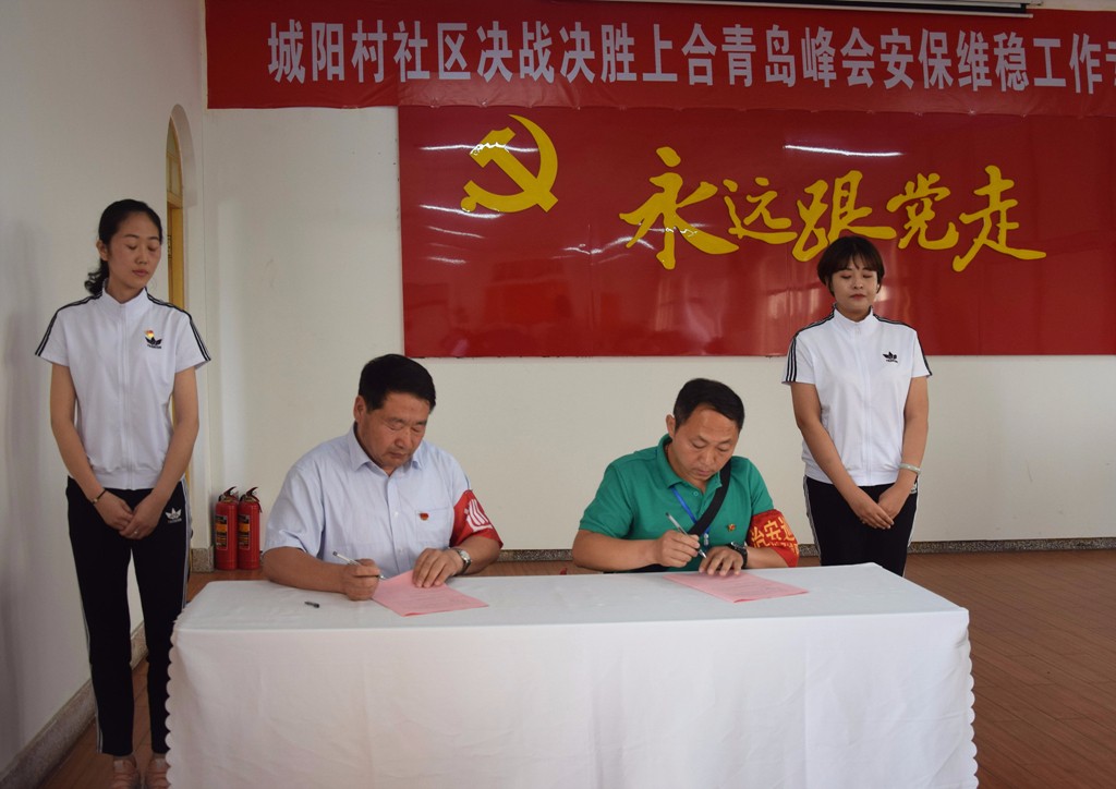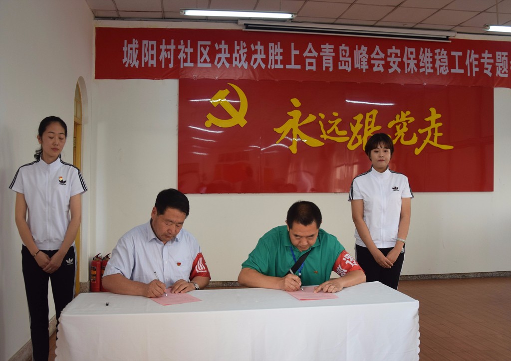 会上,社区居委会主任陈新安代表社区党委、居委会与批发市场三大经营区域、各物业公司分别签订了《上合青岛峰会安保维稳目标责任书》,《目标责任书》进一步明确了安保维稳工作职责,落实了工作目标责任,细化了工作绩效考核奖惩制度,为全社区决战决胜上合青岛峰会安保维稳工作提供了有力保障。