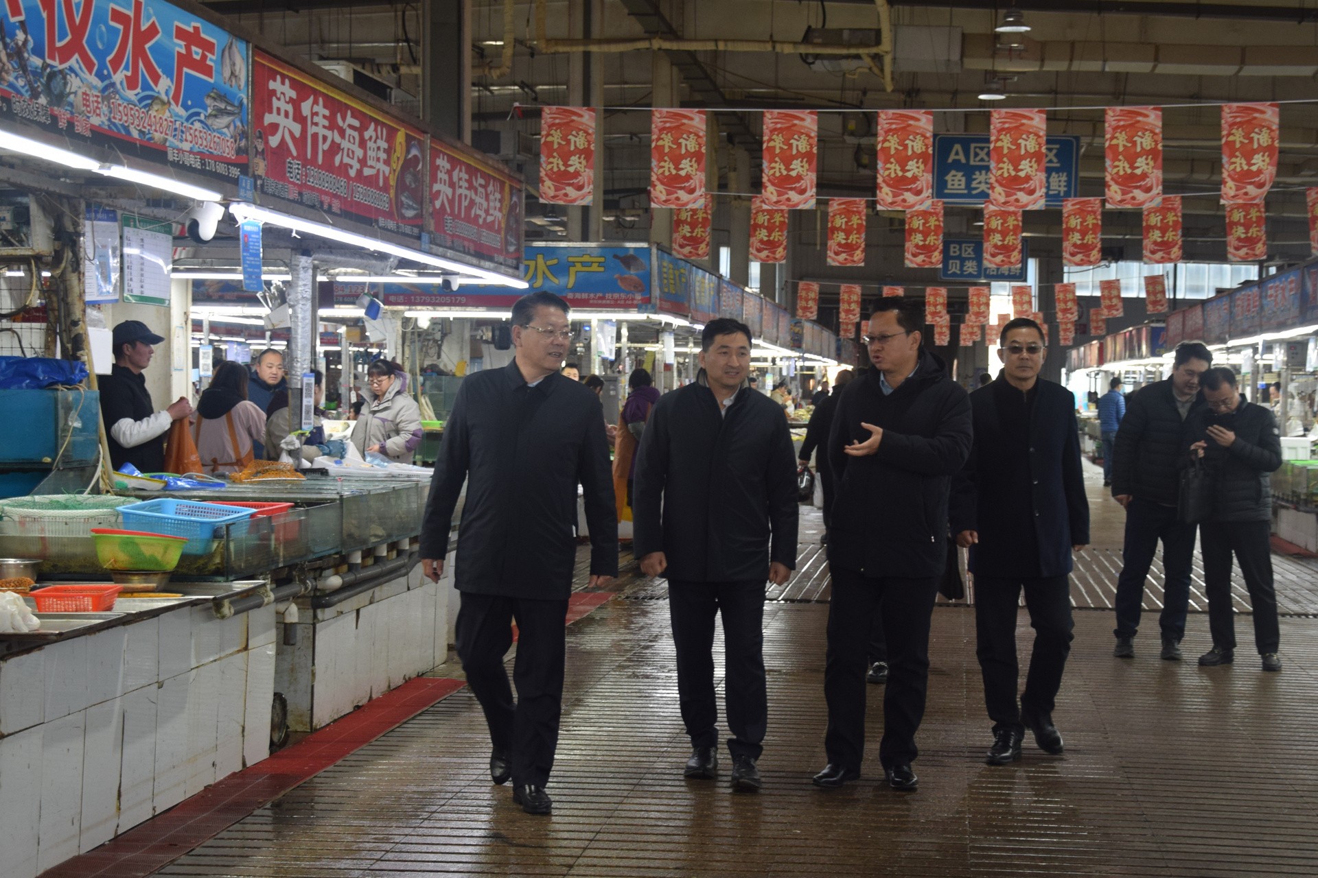 2026年1月9日下午,城阳区政府副区长张明亮莅临城阳批发市场调研指导工作。城阳区市场监督管理局局长王红俊,区市场监督管理局三级高级主办李德连,城阳批发市场董事长、总经理袁波友,副董事长、常务副总经理宫相军,副总经理、水产经营区域总经理袁秩宝陪同参加。