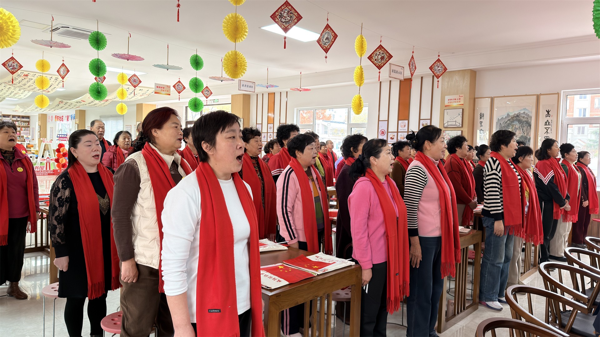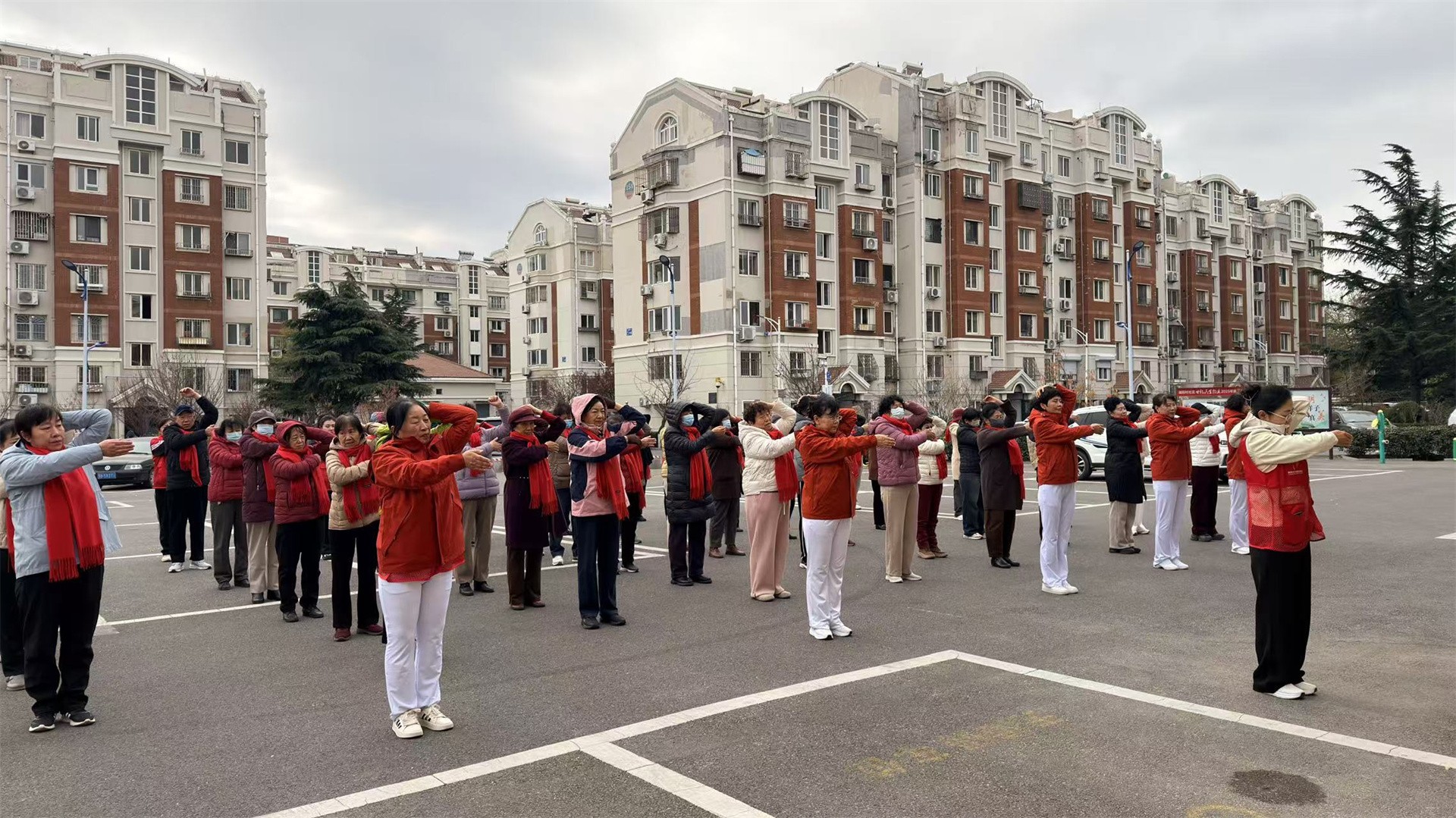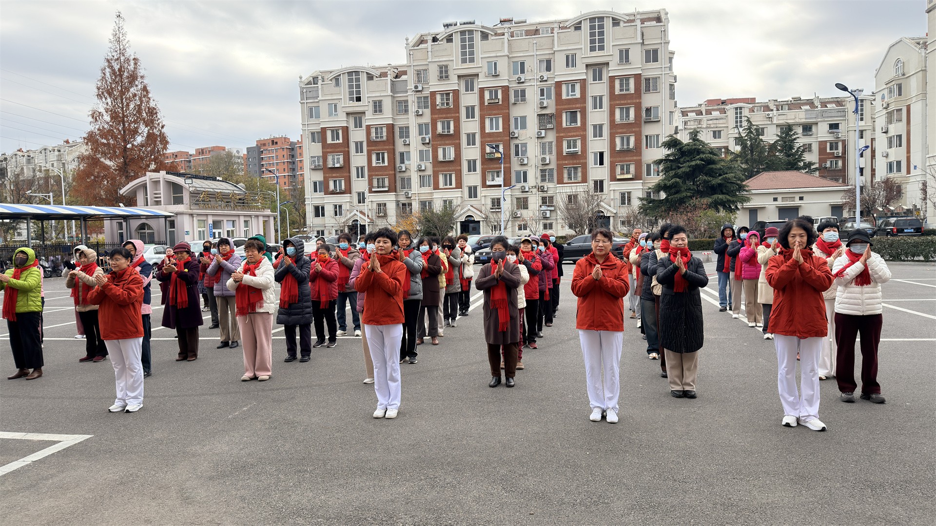 活动伊始,全体居民肃立,奏唱国歌,激昂的旋律中凝聚起奋进的力量;随后,大家挥动手中的国旗,齐声高唱《没有共产党就没有新中国》,歌声响亮,传递出对党的深厚感情和感恩之心。轻松互动环节里,居民们跟着志愿者的节奏练习了拍拍手、拍拍肩、找朋友等小游戏,简单的动作既舒缓身心,又增进了居民之间的默契;室外的拍打操活动,也让居民们在轻松愉快的氛围中掌握了简单实用的养生技巧。最后,学员们共同观看学习了马钧老师的视频授课《人生要有好老师》。