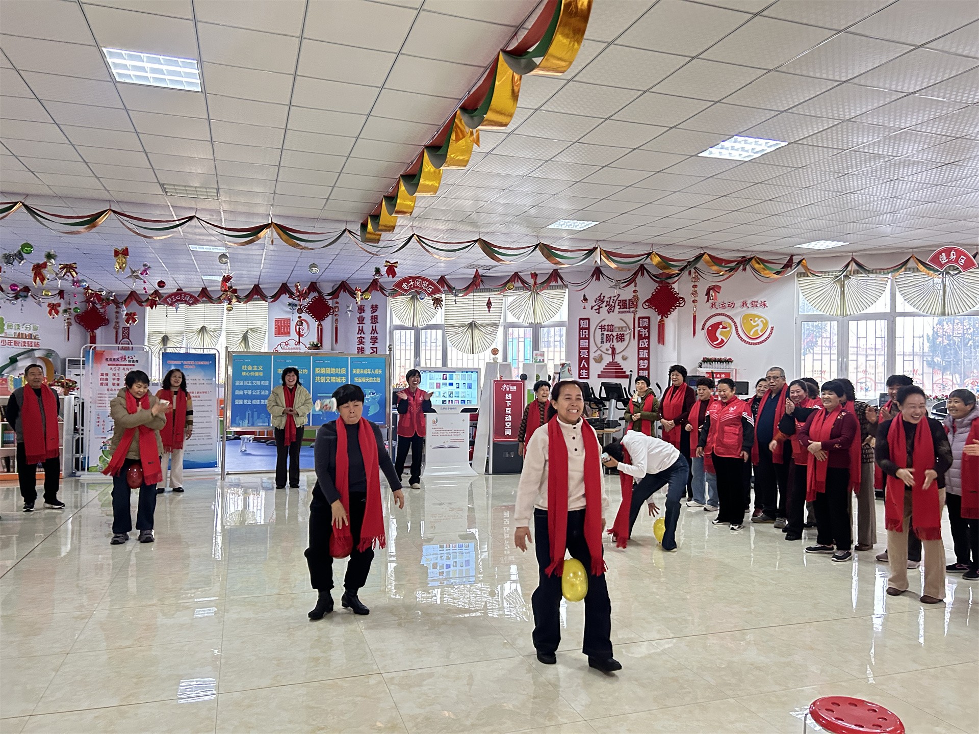 课间,居民们跟着音乐节拍习练《拍打养正操》和志愿者自编的舞曲《歌声与微笑》,活动筋骨,强身健体。此外,社区党委还贴心为居民精心制作准备了学习包和爱心围巾,给冬日的课堂增添了浓浓暖意。