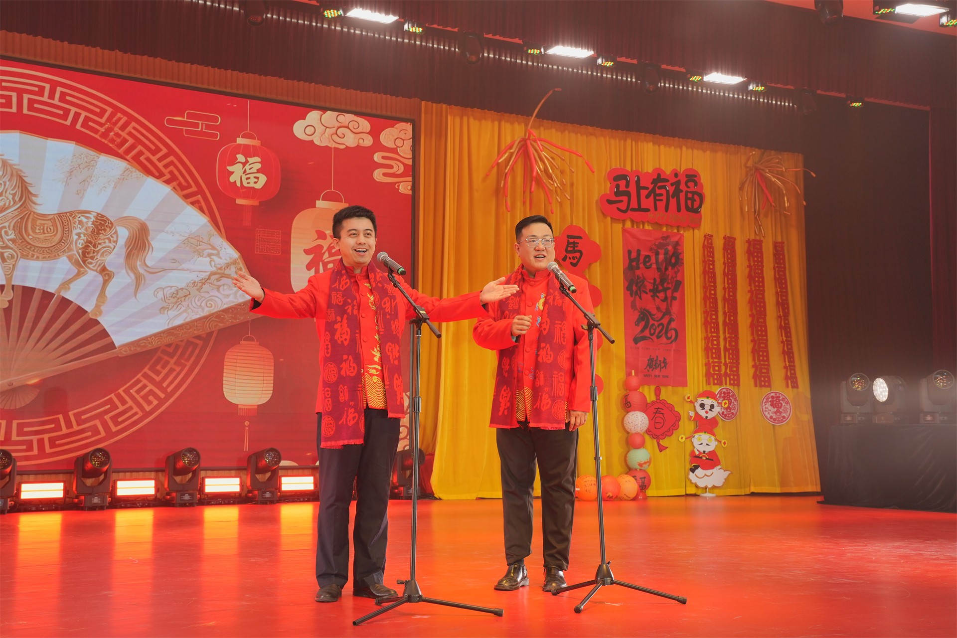 文艺汇演在灵动欢快的开场舞《如意舞步》中拉开序幕,大、小朋友的精彩演绎瞬间点燃现场气氛,将新春的欢乐氛围拉满!随后,相声《欢声笑语》凭借诙谐的语言和默契的捧逗,展现传统艺术魅力;魔术《罗圈献彩》带来神秘奇幻的视觉体验,让观众屏住呼吸见证奇迹;趣味舞蹈《桃花运 + 粉红色的回忆》将甜蜜与浪漫融合,跳出了青春活力;歌曲串烧《大咖秀》将各位民间大咖集结,跨越风格演绎经典曲目,引发全场对青春时代的回忆;小品三部曲之《女婿又上门,吗?》聚焦家庭趣事,通过自编自导自演的剧情带来阵阵欢笑;情景怀旧歌曲《常回家看看》温情满满,传递出家的温暖与牵挂。活动现场欢呼声、喝彩声此起彼伏,幸运大抽奖环节更是堪称全场焦点,福运满满的大金蛋内藏承载新春好运的福袋,随着一二三等奖的出现,将现场的热烈氛围一次次推向高潮。整场演出形式多样、内容丰富,满含对全社区广大居民的新春诚挚祝福与美好期许。最后,迎新春文艺汇演在全体与会人员挥舞手中的国旗齐声高唱《歌唱祖国》中圆满落幕。