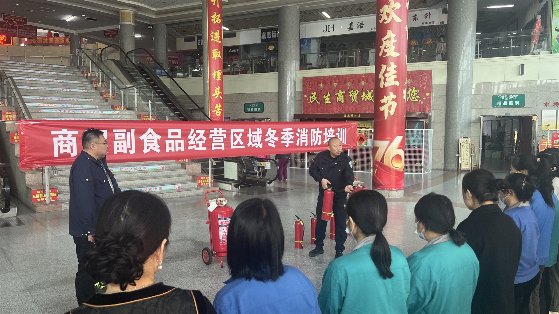 11月是全国消防安全宣传月,11月17日,商贸副食品经营区域以“全民消防 生命至上-安全用电用火”为主题,以提升员工与经商业户应急处置与自救能力为核心,联合消防大队、市场警务站、市场监督管理所开展消防安全培训及模拟逃生演练,通过场景化培训模式,筑牢安全经营“防火墙”,全力护航区域安全稳定。
