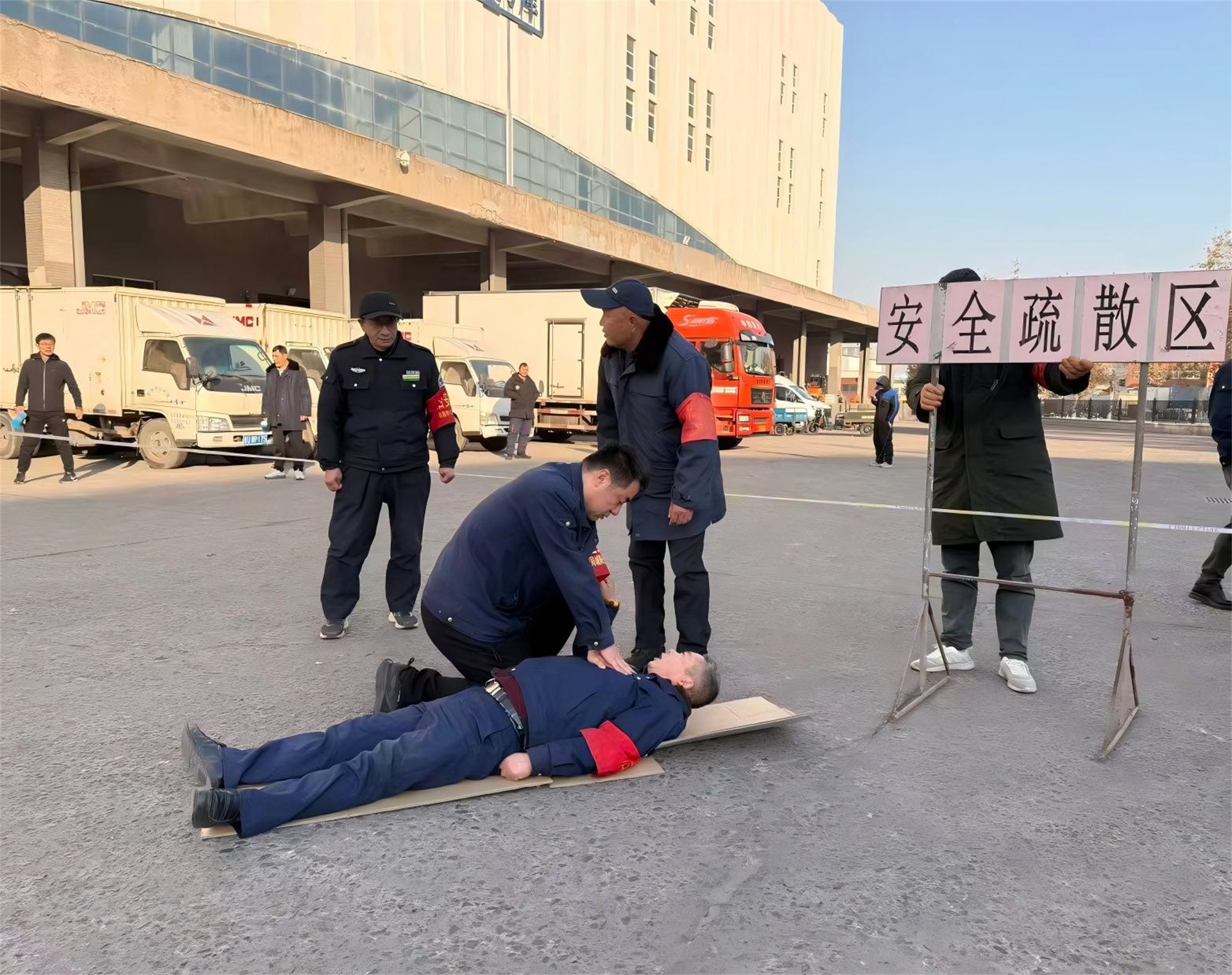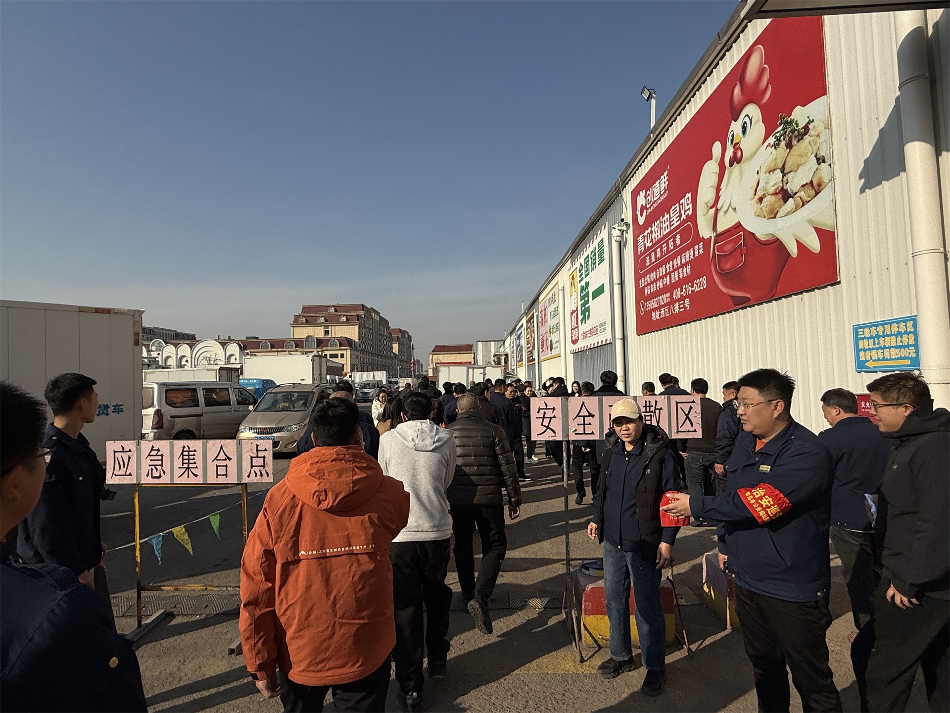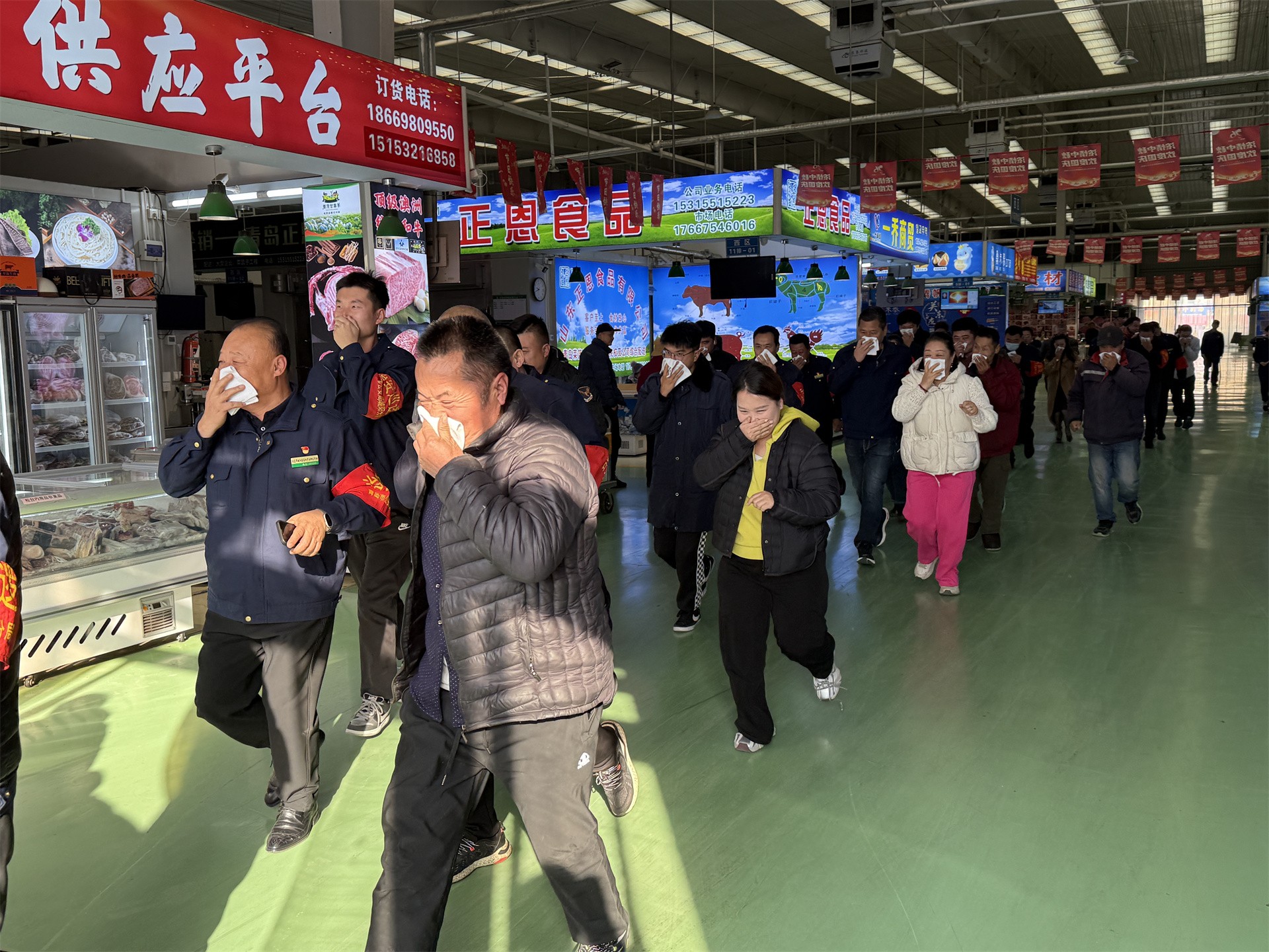 区域根据各经营场所特点开展火灾逃生演练,冷冻食品物流中心模拟网点用电线路短路引发火灾,各应急小组按照《消防安全应急预案》分工迅速响应,疏散组通过大厅广播预警、现场引导经商业户使用多层湿毛巾捂住口鼻,向摊位最近安全出口低姿态有序撤离;9万吨冷库开展液氨泄漏消防演练。各密闭经营场所通过消防演练,切实提升人员应急避险处置和协同配合能力。