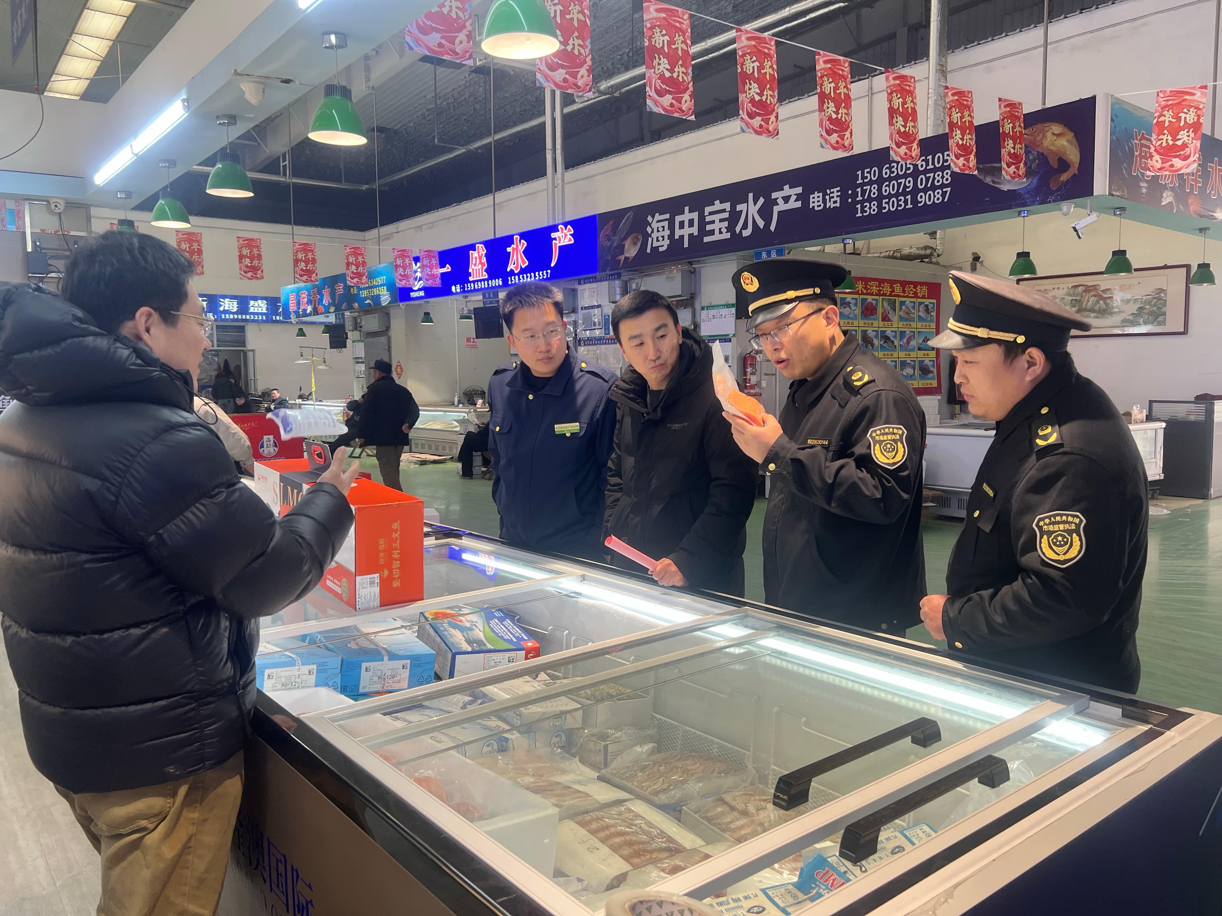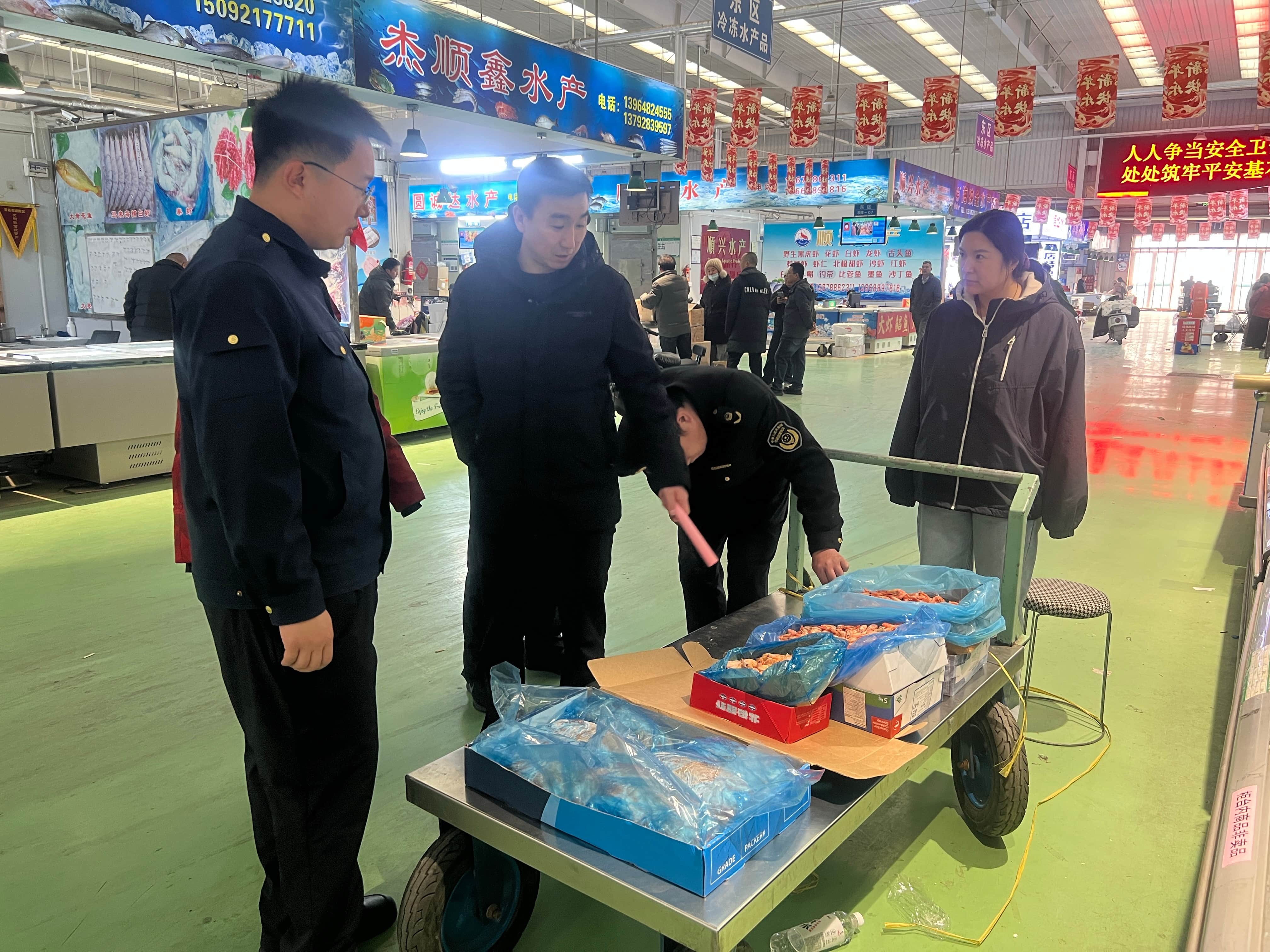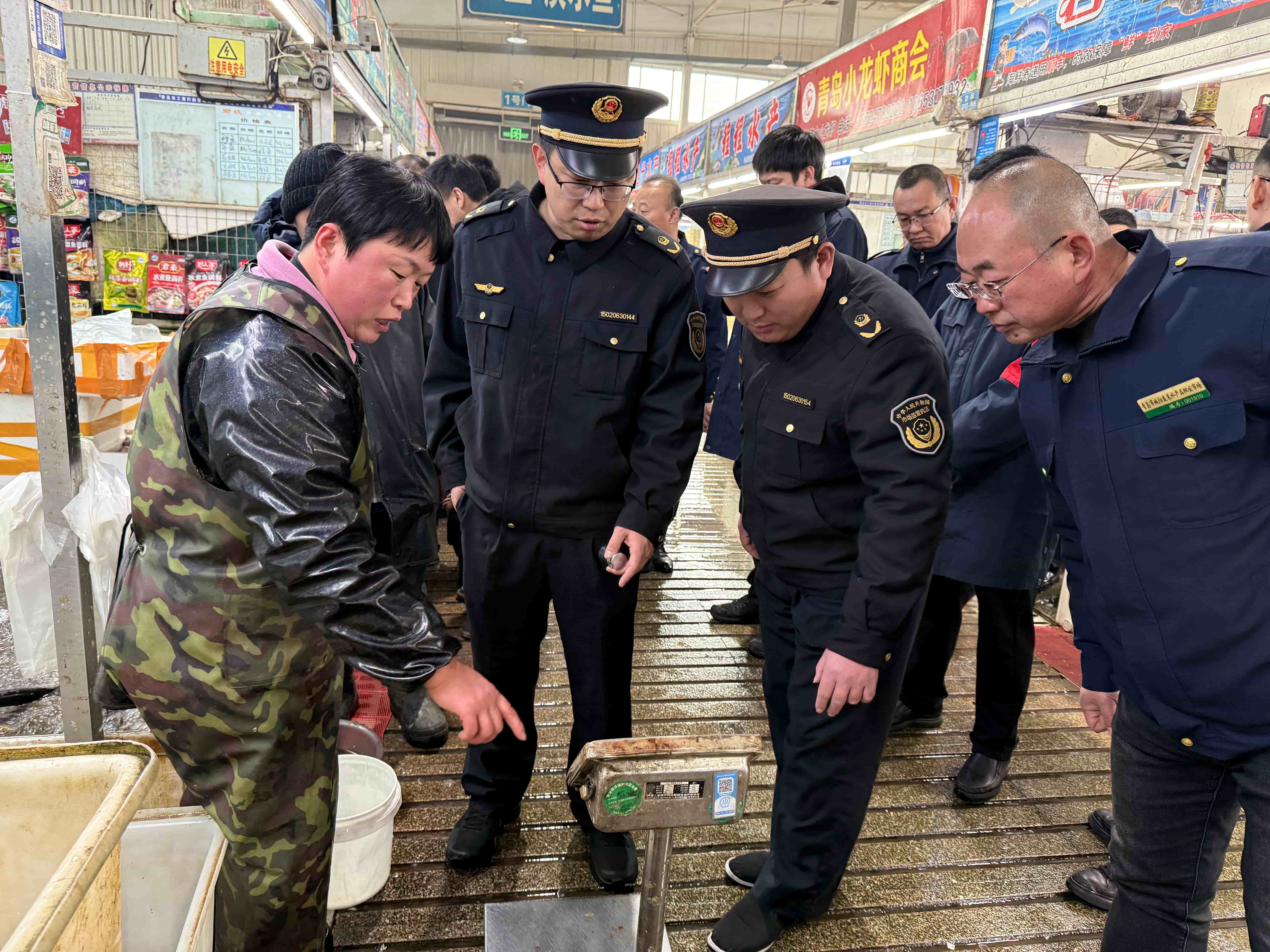 结合春节前消费特点,区域协助市场监督管理所对活鱼宰杀网点电子秤进行校验,逐一查看电子秤合格检验贴及“一秤一码”二维码张贴情况,从源头杜绝缺斤少两等欺诈行为;同时,检查海鲜商城电子秤配备与使用情况,对海鲜商城“皮筋捆绑”销售行为、冷冻食品安全开展排查,切实保障消费者合法权益。